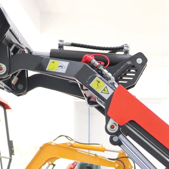 Braccio in acciaio al manganese addensato, resistente a torsione e pressione, con elevata capacità portante; condutture idrauliche anticontenzione + avvertenze di sicurezza garantiscono un funzionamento più sicuro. Le condutture idrauliche esposte sono dotate di manicotti protettivi anticontenzione per prevenire efficacemente danni da ghiaia e oggetti taglienti che potrebbero causare perdite.